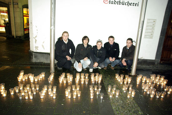 In der Nacht des 9. November 1938 zündeten Nationalsozialisten im ganzen Reich Synagogen an und zerstörten jüdischen Besitz. Spätestens seit diesem Ereignis ist der 9. November ein deutscher Schicksalstag. Aus diesem Anlass heraus versammelten sich die Andernacher Jusos auch in diesem Jahr am Historischen Rathaus, vor dem sie gemeinsam mit Passantinnen und Passanten die Parole „Wider das Vergessen!“ mit Teelichtern aufstellten.