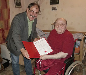 Stadtbürgermeister Günter Schnitzler gratuliert Jakob Schmitz und überreicht ihm die Urkunde mit der silbernen EhrennadeAnlässlich seiner 40 jährigen Mitgliedschaft hat der Vorsitzende der Polcher SPD Günter Schnitzler zusammen mit der Geschäftsführerin Anne Kürschner Herrn Jakob Schmitz zu Hause besucht und ihm die Urkunde für seine langjährige Mitgliedschaft überreicht.