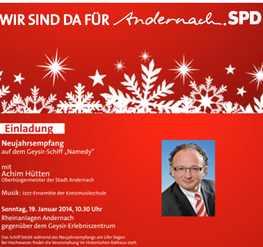 Der Empfang der Andernacher SPD beginnt am Sonntag, 19. Januar 2014, um 10.30 Uhr.