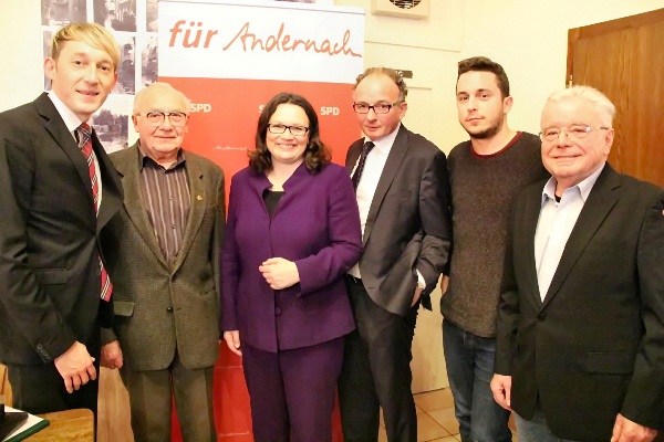 Andernach. Ein ganz besonderer Gast hat sein Kommen für den nächsten Seniorenstammtisch der Arbeitsgemeinschaft 60plus der Andernacher SPD angekündigt. Gemeinsam mit Bundesarbeitsministerin Andrea Nahles wollen sich die Genossinnen und Genossen am kommenden Freitag, dem 18.12.2015 ab 13.30 Uhr im Lokal Stammbaum in der Marktgasse 1 in Andernach auf die weihnachtlichen Feiertage einstimmen.