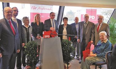 Folgende Mitglieder wurden für ihre langjährige Partei-Mitgliedschaft geehrt: 40 Jahre: Rudi Möhlenbrink, Agathe Mäurer und Konrad Weisshaar; 60 Jahre: Hermann Ruppert. Mit der Willy Brandt-Medaille wurden Elisabeth Mentges und Hubert Rumpf ausgezeichnet. Oberbürgermeister Achim Hütten durfte die Werner-Klein-Plakette entgegennehmen, die er als besondere Ehrung empfand.
