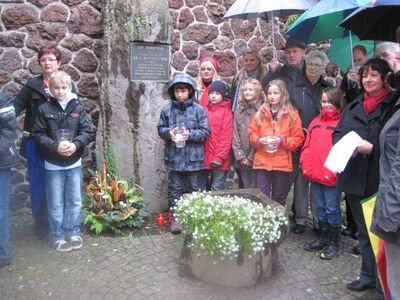 Gruppierungen an den Gedenkstein der Jüdischen Mitbürgerinnen und Mitbürger