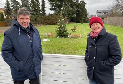 (Bildunterschrift: Klaus Herbel und Karin Küsel vor einem geschmückten Tannenbaum)