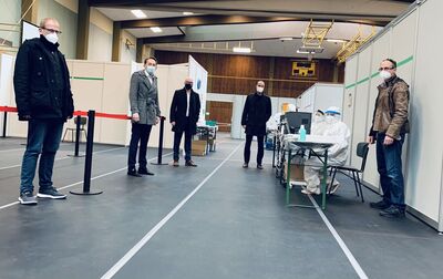 Mayen-Koblenz. Das 2-für-Mainz-Team – Clemens Hoch, Staatssekretär, und der Andernacher Landtagsabgeordnete Marc Ruland (SPD) – besuchte kürzlich die Fieberambulanz des Landkreises Mayen-Koblenz in der Stadt Mayen. Dort wurden Clemens Hoch und Marc Ruland mit Abstand und unter Einhaltung der Hygienemaßnahmen von Oberbürgermeister Dirk Meid (SPD) und Herrn Rainer Nell, oberster Katastrophenschützer im Landkreis, und Herrn Dr. Kudielka empfangen. In einer Fieberambulanz können sich Bürgerinnen und Bürger bei Sympthomen oder begründeten Verdacht auf das Corona-Virus testen lassen. Seit Ende Februar gibt es eine solche Ambulanz für den Landkreis in Mayen. Mitte Juni ist sie vom Schützenplatz in eine Turnhalle umgezogen. Zehn niedergelassene Ärzte arbeiten dort vor Ort. Unterstützt werden diese von 12 Mitarbeitern seitens des Gesundheitamtes und vier Mitarbeitern seitens der Bundewehr. Bürgerinnen und Bürger, die sich testen lassen, benötigen hierzu keinen Termin. Die Krankschreibung und die gegebenenfalls erfolgende Rezeptausgabe geschieht vor Ort.
