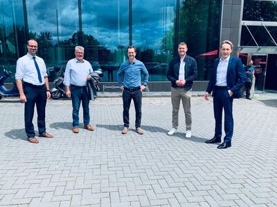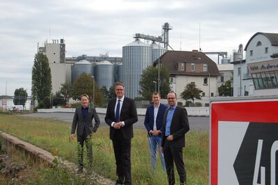 Oberbürgermeister Achim Hütten, Christian Heller und Marc Ruland, MdL im Austausch mit Herbert und Patrick Doll