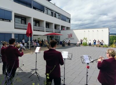 Mitte August 2020 nahmen Staatssekretär Clemens Hoch und Marc Ruland, MdL, an der feierlichen Eröffnung der Kindertagesstätte „Rasselbande“ der Firma thyssenkrupp Rasselstein teil.
