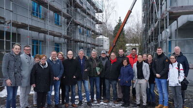 Der SPD-Kreisverband Mayen-Koblenz und der SPD-Stadtverband Andernach besuchten Ende Februar den gerade entstehenden Baukomplex in Mendig. Wie Stadtbürgermeister Hans-Peter Ammel (SPD) erläuterte, schafft die Stadt Mendig auf 1.684 Quadratmetern Wohnfläche 24 Wohnungen für sozialen Wohnraum. Die unterschiedlich großen Wohnungen – den verschiedenen Bedarfsgrößen gerecht – werden nach ihrer Fertigstellung einen Mietzins von 4,60 Euro pro Quadratmeter haben.