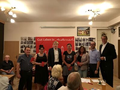 (3. Platz) Oktay Sezen, (4.) Maya Eller, (6.) Sevnur Aymergen, (7.) Fariz Drekovic, (8.) Sara El Kasmi, (9.) Juri Ertmann und (10.) Marine Zargarian. Mit fünf Kandidatinnen und fünf Kandidaten auf der Liste konnten die Andernacher Sozialdemokraten damit erneut bestätigen, dass sie Gleichstellung bei ihrer Listenaufstellung nicht nur fordern, sondern selbst auch eindrucksvoll vormachen.