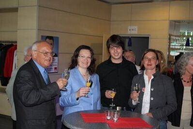 Die stellvertretende Bundesvorsitzende und Kreisvorsitzende Andrea Nahles (MdB) hielt eine bewegende Rede über die Werte, die die SPD in ihrer langen Geschichte bewahrt hat und sprach dann über ihre unmittelbar bevorstehende Reise zur Unterstützung einer israelisch-palästinensischen Begegnungsstätte in Jerusalem.