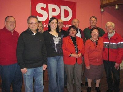Der neue SPD Ortsvereinsvorstand v.l.n.r. Andreas Niefer, Gabriele Schnitzler, Viktor Steinbach, Udo Zenz (Schatzmeister), Thomas Ternes, Günter Schnitzler (Vorsitzender), Michael Walo Stellv. Vorsitzender), Tanja Keßler (Geschäftsführerin), Dieter Kürschner (Vors. AG 60Plus), Dietrich Tramm, Roswitha Tramm, Dieter Georgi und Hans Georg Ziesemer. Foto: Privat
